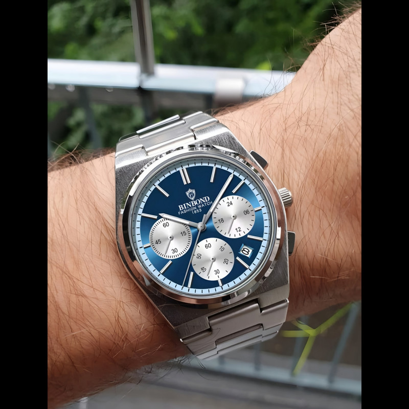 ساعت مچی عقربه‌ای کوارتز مردانه بین باند مدل اسپرت سه موتور فعال کرنوگراف بند استیل قفل مخفی کد ۲