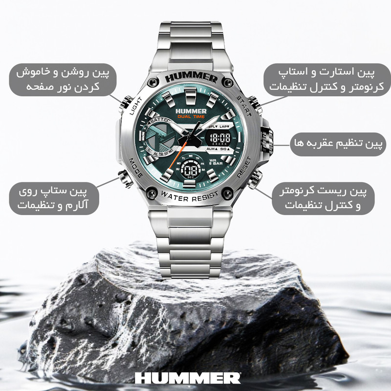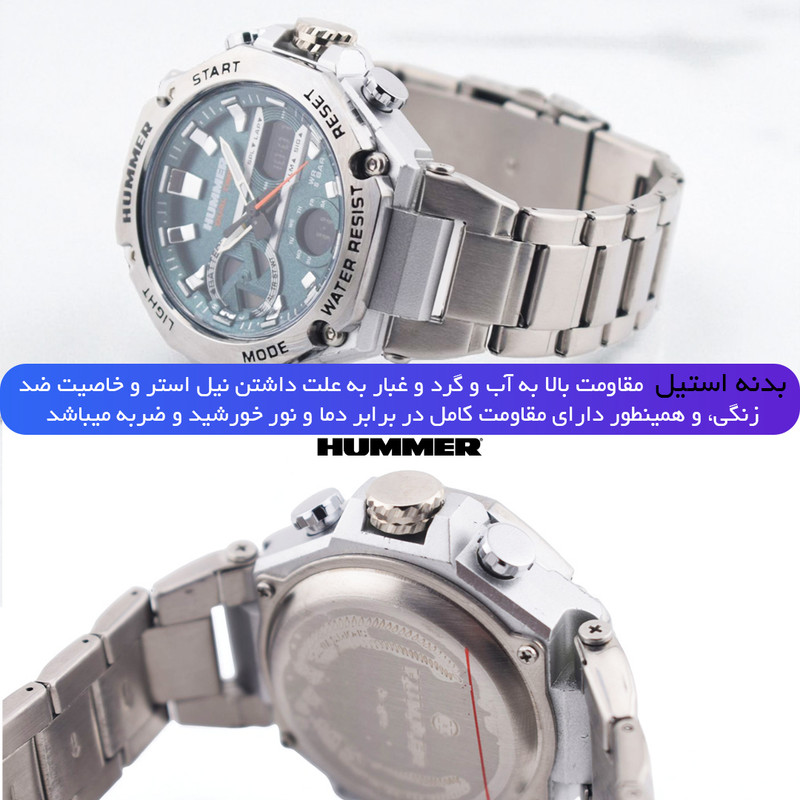 ساعت مچی عقربه ای مردانه برند هامر – Hummer یکی از برندهای معروف در طراحی ساعت های خاص و منحصر به فرد بوده، تحت لیسانس هامر و به صورت مسترکوالیتی تولید شده است. این شاهکار جدید از برند هامر، خوش ساخت ترین و خاص ترین طراحی بدنه و صفحه را در ساعت های عقربه ای دارد. این ساعت نمای بسیار زیبایی دارد و مناسب همه نوع سنی میباشد. در ساخت این ساعت از متریال های باکیفیت استفاده شده و مکانیزم لولا آن بسیار بادوام میباشد. این ساعت دارای بدنه استیل مقاوم و ضد آب و بند استیل ضد زنگ میباشد که دیگر ترسی هنگام شست شو دست ها وجود ندارد و همینطور طراحی خاص این ساعت، آن را بسیار منحصر به فرد و مستر کرده. این برند از مواد با کیفیت برای ساخت ساعت هایش استفاده می کند تا بهترین تجربه را برای شما ارائه کند. با تهیه ساعت هامر، شما می توانید به راحتی از تمامی فعالیت های روزانه خود لذت ببرید و در عین حال، به نحوی شیک و جذاب به نظر برسید. ساعت مچی عقربه ای مردانه هامر مدل HM1444-C1 همراه هارد کیس و بگ برای شما ارسال خواهد شد.