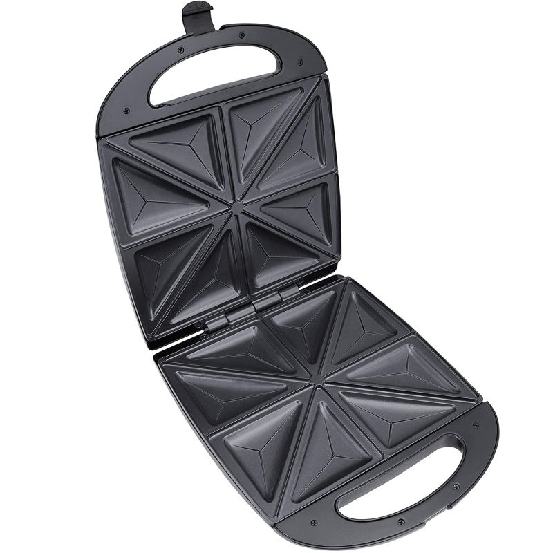- سایر توضیحات: امروزه ذائقه افراد به مصرف غذاهای فست فودی بیشتر شده است با استفاده از اسنک ساز 4ورقه میتوانید غذایی سالم تهیه کنید. با داشتن چهار صفحه نچسب که در قسمت بالا و پایین دستگاه نصب شده است. قادر به تهیه 8تکه اسنک گرم به شکل مثلثی و خوش طعم در چند دقیقه کوتاه را دارد. ساندویچ ساز جی پاس به رنگ سفید و دارای دو چراغ نشانگر قرمز وسبز است که دمای اسنک را نشان می دهد. گر از طرفداران اسنک های فوری، سالم و خوشمزه هستید، باید حتما دستگاه ساندویچ ساز جی پاس مدل GST5391 در آشپزخانه داشته باشید. این وسیله از بهترین لوازم آشپزخانه به شمار می رود. توان مصرفی این دستگاه 1100 وات است و یک عدد تابه ی نچسب با کیفیت دارد. به علاوه نشانگر LED نیز روی بدنه قرار گرفته. و دستگیره عایق حرارت از مزایای این دستگاه است. ویژگی مهم سیستم قطع خودکار نیز دارد. تعداد درگاه ساندویچ سهگوش در این دستگاه 8 عدد است.