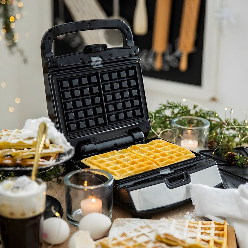 ساندویچ ساز با توان 1800 وات 2 در 1 (2کاره: ساندویج ساز و گریل) و گرانیت سوپر نانو و ساندویچ ساز قابل جدا شدن 4 برش و صفحات با پوشش نچسب و چراغ های نشانگر و دسته لمسی خنک و پایه های مقاوم در برابر لغزش و اسان برای تمیز کردن و دکوراسیون بزرگ استیل ضد زنگ و حفاظت ایمنی در برابر گرمای بیش از حد خودکار و کنترل دما میباشد