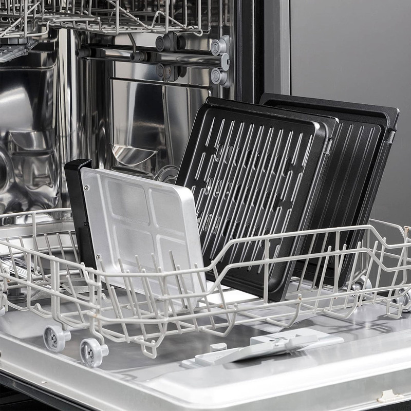 - سایر توضیحات: دارای فناوری کبابپزی بدون دود / صفحات و سینی چکهگیر قابل جدا شدن برای شستشو در ماشین ظرفشویی / پوشش نچسب بادوام فاقد مواد شیمیایی BPA، ۳ برابر دوام بیشتر / دارای لولای شناور (با ارتفاع پخت ۲.۵ سانتیمتر) / دارای چراغ نشانگر آماده بودن برای پخت / جنس بدنه – رویه از جنس استیل ضد زنگ، زیره از جنس پلاستیک / به لطف لولای شناور آن که غذاهایی تا ارتفاع ۳.۸ سانتیمتر را در خود جای میدهد، گوشت، ماهی، سبزیجات و بسیاری موارد دیگر را آماده کنید