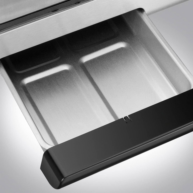 | سایر توضیحات | دارای فناوری کبابپزی بدون دود / صفحات و سینی چکهگیر قابل جدا شدن برای شستشو در ماشین ظرفشویی / پوشش نچسب بادوام فاقد مواد شیمیایی BPA، ۳ برابر دوام بیشتر / دارای لولای شناور (با ارتفاع پخت ۲.۵ سانتیمتر) / دارای چراغ نشانگر آماده بودن برای پخت / جنس بدنه – رویه از جنس استیل ضد زنگ، زیره از جنس پلاستیک / به لطف لولای شناور آن که غذاهایی تا ارتفاع ۳.۸ سانتیمتر را در خود جای میدهد، گوشت، ماهی، سبزیجات و بسیاری موارد دیگر را آماده کنید |