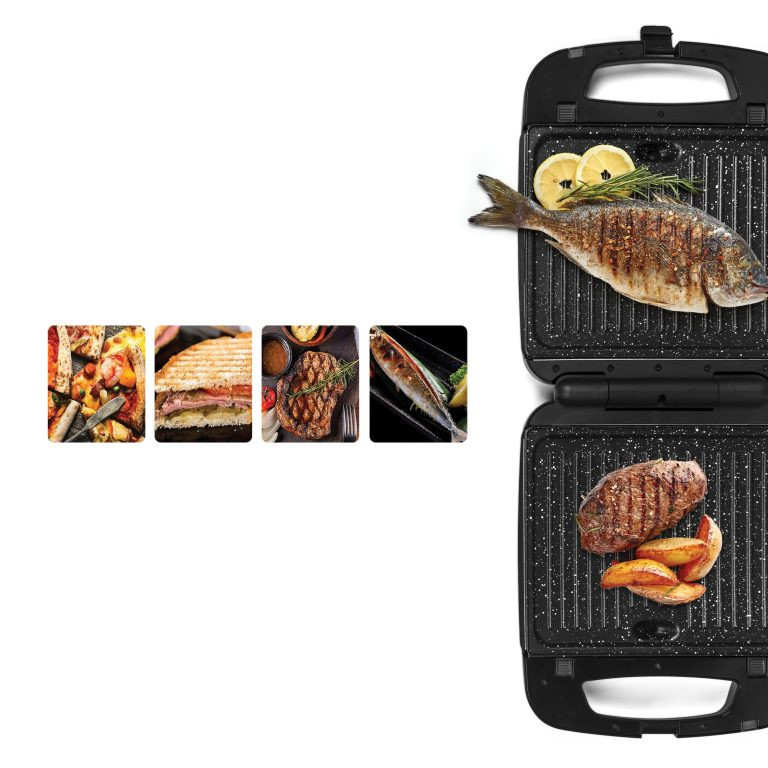 ساندویج میکر بیسمارک آلمان با چهار صحفه مختلف با جنس گرانتی و المنت با طول بیشتر و جنس قوی تر کار شده است این ساندویچ میکر با قابلیت 180 درجه بودن این قابلیت به شما می‌دهد که به طور همزمان استفاده کنید از دو صفحه