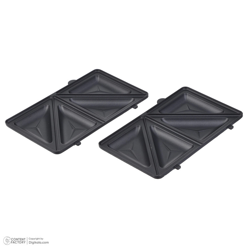 - سایر توضیحات: ولتاژ 240 – 220 ولت/فرکانس 60/50 هرتز/ صفحه پخت مناسب 4 ساندویچ سه گوش/ صفحه با پوشش نچسب/ نشانگر آماده بهکار بودن دستگاه/ کنترل دمای خودکار/ فیوز حرارتی ایمنی/ چفت ایمنی درب ساندویچ ساز/ قابلیت گرمادهی هم زمان دو صفحه بالا و پایین/ دکمه ارتجاعی برای تعویض صفحات