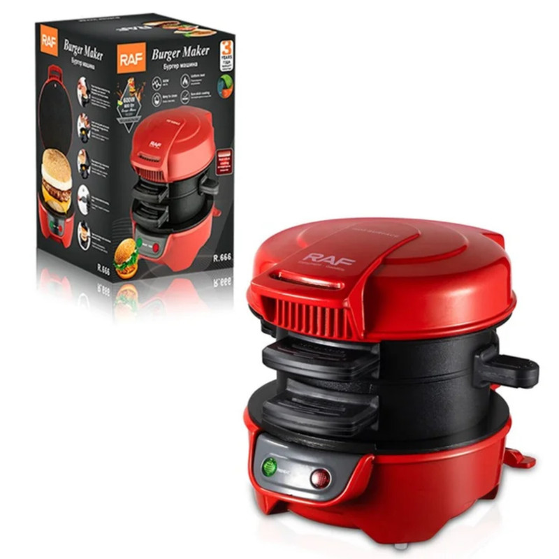 دستگاه برگر ساز راف مدل R.666 از جدیدترین محصولات تولید شده توسط این کمپانی پیشرو و خلاق میباشد که در مدت زمان کمی پس از عرضه توانست کاربران زیادی را مجذوب خود کند. به کمک این دستگاه شما میتوانید برای صبحانه یا عصرانه و میان وعدههای خود در عرض 5 دقیقه، یک همبرگر خانگی خوش طعم و سالم تهیه کنید. این دستگاه از چند لایه تشکیل شده است که میتوان بر روی هر سطح، خوراکی مورد علاقه خود را طبخ و ترکیب کنید و یک خروجی خوش طعم و عالی داشته باشید. توان مصرفی این دستگاه 600 وات است و به کمک صفحات نچسب خود گرمایی یک نواخت به تمام سطوح ساطع میکند. گفتنی است که پس از اتمام پخت این دستگاه میتوان برای نظافت به راحتی قطعات را جدا کرد. در مجموع اگر به دنبال یک دستگاه با کیفیت برای تهیه صبحانه و میان وعدههای خود هستید، برگر ساز راف مدل 666 که از طراحی ظاهری بسیار زیبا و خلاقانهای برخوردار است، میتواند یک گزینهی بسیار دلچسب برای شما باشد.