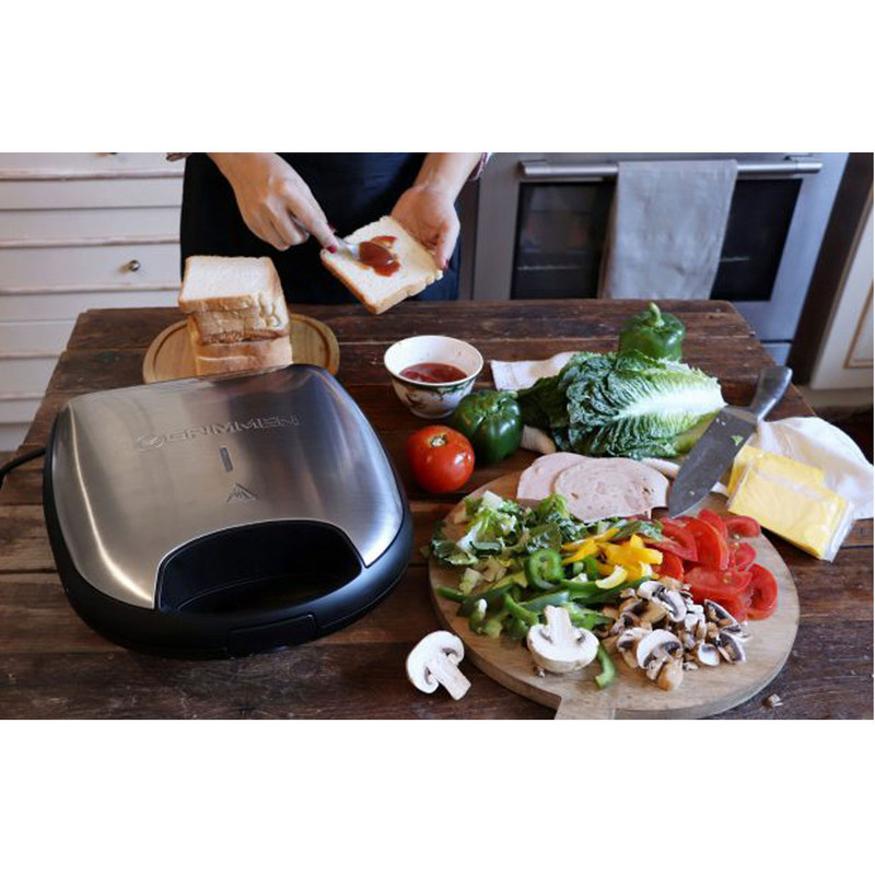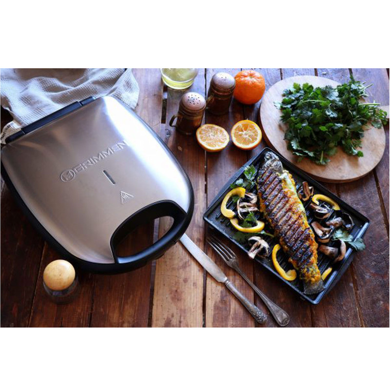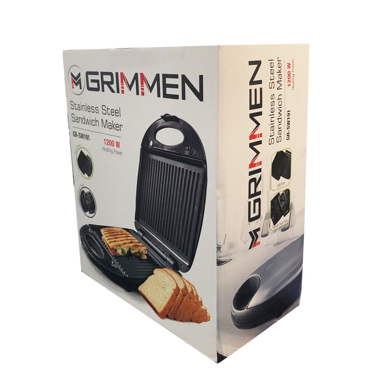 GRIMMEN GR-SW191 از محصولات باکیفیت شرکت آلمانی گریمن بوده که در رنگ نقره ای و توان ۱۲۰۰ وات به بازار عرضه شده است. بدنه ی استیل ضد زنگ این محصول، استحکام و مقاومت آن را بالا برده است. همراه این محصول عالی صفحات ساندویچ ساز و گریل کردن ارائه شده است؛ که طراحی هر کدام از آن ها جداگانه و منحصر بفرد میباشد. به وسیله ی صفحه ی ساندویچ ساز GR-SW191 میتوانید ۸ عدد ساندویچ خوشمزه ی مثلثی درست کنید. سینی نسوز گریل کردن هم مخصوص گریل، سرخ کردن و گرم کردن موادی از قبیل گوشت، فیله مرغ، همبرگر و … میباشد. برای گریل کردن مواد در این ساندویچ ساز به روغن بسیار کمی احتیاج خواهید داشت؛ و جنس نچسپ سینی ها، شستشو را برای شما بسیار آسان میکند.