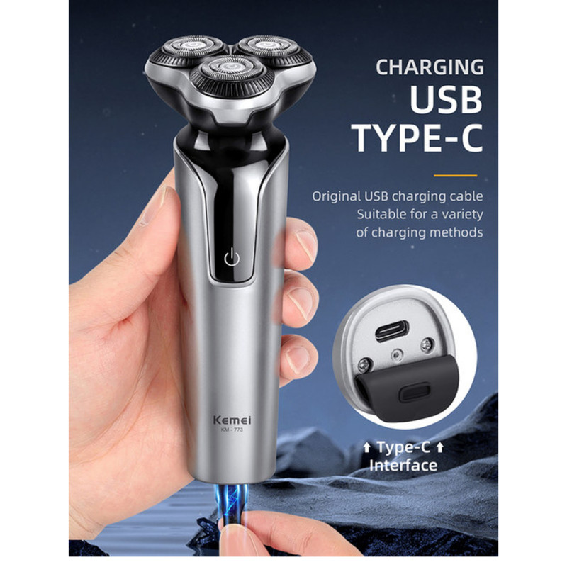 ریش تراش برقی مردانه kemei 773 با سرهای شناور برای اصلاح خشک و مرطوب مجهز به بلوک قابل تعویض از سرهای اصلاح متحرک است که هم هنگام اصلاح خشک و هم با استفاده از فوم یا ژل اصلاح، اصلاحی صاف و بدون تحریک را ارائه می دهد.