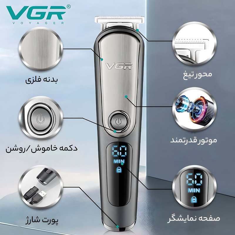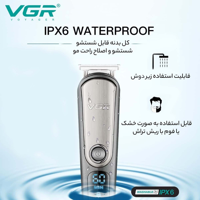 ماشین اصلاح وی جی ار مدل 101 دارای 6 عدد سری بدن زن بادی گرومینگ – اصلاح موی بینی – سری مخصوص مناطق حساس – سری مخصوص اصلاح موی بدن و سری مخصوص اصلاح مو صورت و همچنین سری مخصوص اصلاح موی سر را نیز دارا میباشد این دستگاه کاملا ضدآب و همچنین دارای استند شارژ میباشد این دستگاه نمایشکر دیجیتال را دارا است وبا 90 دقیقه شارژ 60 دقیقه کارکرد دارد .وی جی ار مدل 101 همچنین 5 عدد سایز شانه به سایز های- 3 – 6- 9- 12 -15 دارد . و همچنین دارای یک شانه متحرک که تنظیم 1 تا 10 میلیمتر را داراست.