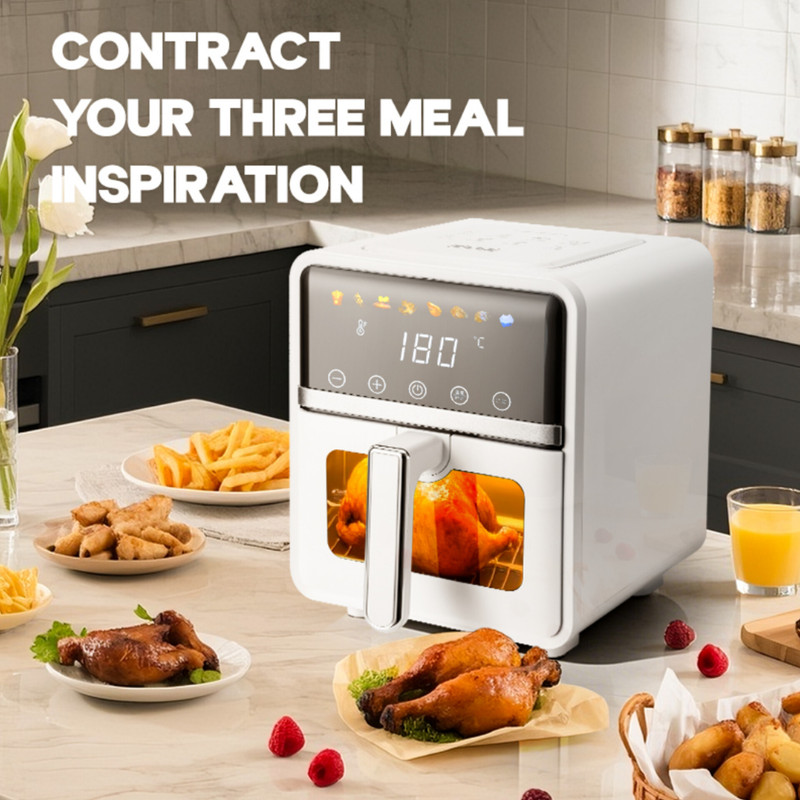 مجهز بودن به صفحهنمایش LED رنگی و ۸ برنامه پخت از پیش تنظیمشده باعث میشود استفاده از دستگاه بسیار ساده و راحت باشد. همچنین امکان تنظیم دما از 80 تا 200 درجه سانتیگراد و وجود تایمر با خاموشی خودکار به شما این امکان را میدهد تا انواع غذاها را با دقت و اطمینان طبخ کنید.