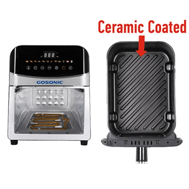| سایر توضیحات | توان مصرفی ۲۵۰۰ وات، دارای دو المنت بالا و پایین (المنت بالا ۱۹۰۰ وات و المنت پایین ۶۰۰ وات)، قسمت قرار گیری ظرف سرخ کن از جنس گالوانیزه که در اکثر سرخ کن ها این قسمت پلاستیک میباشد، پوشش ظرف سرخ کن از جنس سرامیک با طول عمر بالا و کاملا نچسب و مقاوم در برابر حرارت بالا، دارای دوازده برنامه پخت اتومات شامل: استیک، سیب زمینی، مرغ، ماهی، پیتزا، سبزیجات، میگو و …..، قابلیت زمان دهی و تنظیم دما بصورت دلخواه، بدنه تمام استیل با استاندارد SUS430، دارای تایمر ۶۰ دقیقه ای، |