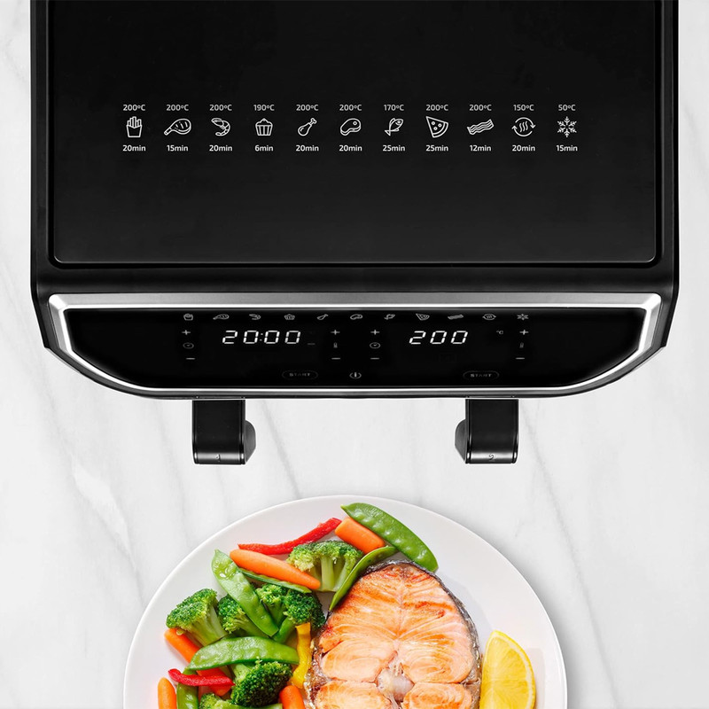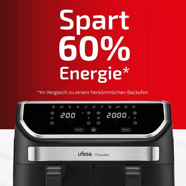 شما می توانید از این سرخ کن برای سرخ کردن بدون روغن، گریل کردن، یخ زدایی، میوه خشک کن، گرم کردن غذا، پختن کیک و … استفاده کنید. به عبارتی دیگر با خرید سرخ کن دوقلو بدون روغن یوفیسا Thunder دیگر نیازی به خرید دستگاه های دیگر در آشپزخانه ندارید و می توانید در مقدار بودجه و زمان خود صرفه جویی کنید. به علاوه دو تا مخزن و کاسه جداگانه سرخ کن رژیمی یوفیسا هر کدام سیستم ایر فایر یا سیستم گرمادهی کاملاً جدا و فن و المنت های مخصوص به خود را دارند.