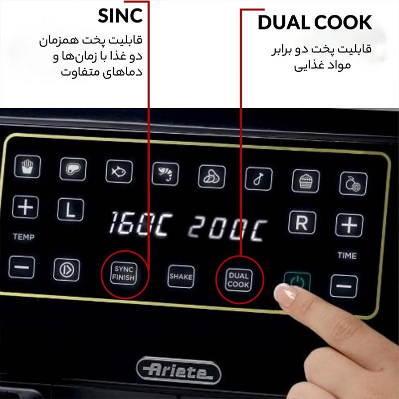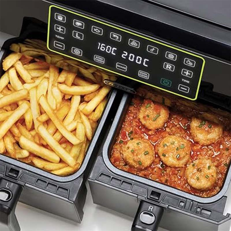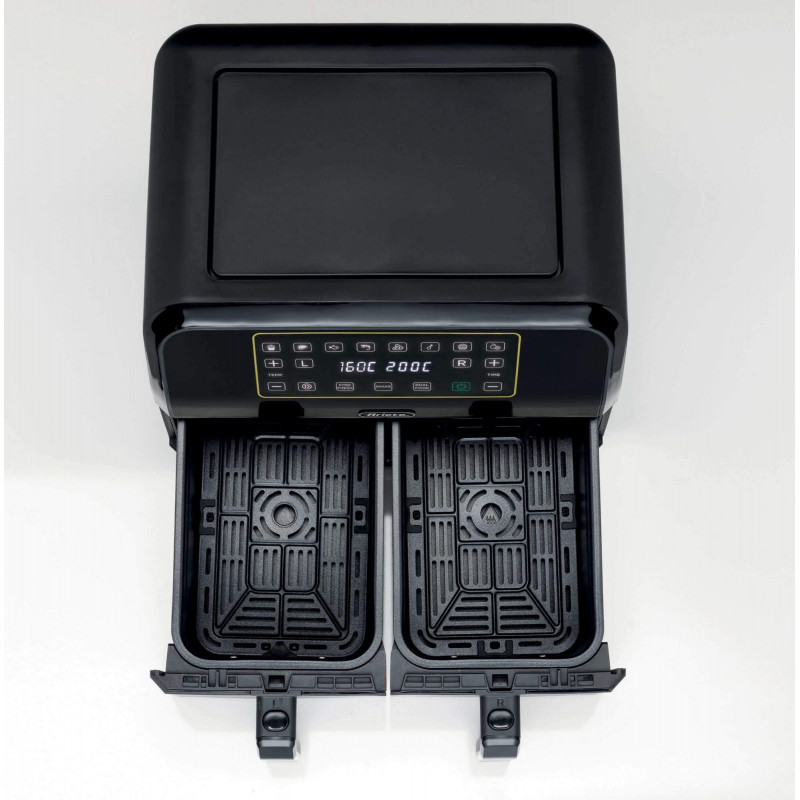 با سرخ کن Airy Fryer Dual می توانید هر ظرفی را به مقدار دو برابر و تنها با استفاده از یک قاشق غذاخوری روغن سرخ کنید تا همزمان سرخ کردنی سالم و خوشمزه داشته باشید. به لطف 2 سبد مجزا، هر کدام 4 لیتر، با سرخ کن دوگانه می توانید تا 3.4 کیلوگرم سیب زمینی سرخ کرده را همزمان بپزید! سیب زمینی سرخ کرده، اما نه تنها، همچنین کروکت، ماهی، گوشت و بسیاری از غذاهای نان دار دیگر، هم منجمد و آماده سرخ کردن، و هم تازه و تازه به لطف 8 برنامه از پیش تعیین شده.