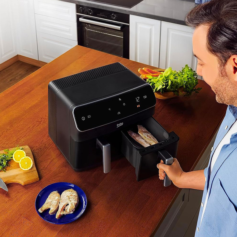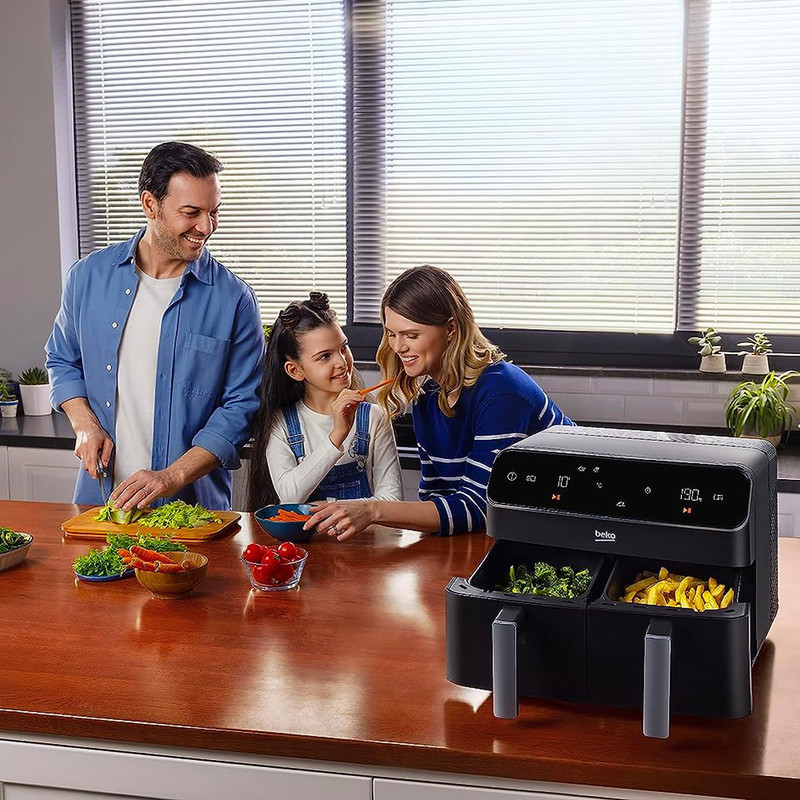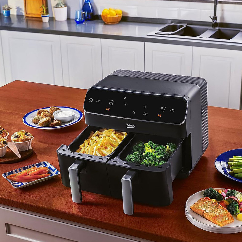 - سایر توضیحات: ظرفیت 8.5 لیتر (4.25 + 4.25) / توان 2400 وات / دارای تکنولوژی محافظت در برابر گرمای بیش از حد سرخ کن دارای ویژگی حفاظت از گرمای بیش از حد است که پخت و پز ایمن را تضمین می کند و از بروز حوادث جلوگیری می کند / برنامه های پیش فرض ( گرم نگه داشتن، یخ زدایی، گرم کردن مجدد، آبگیری یا میوه خشک کن ، سرخ کردن ، پخت، برشته کردن، کباب کردن مرغ و گریل