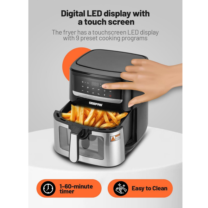 این سرخ کن مجهز به نمایشگر دیجیتال LED با 9 برنامه پخت از پیش تعیین شده است و برای پخت و پز بدون روغن و درست کردن سیب زمینی سرخ کرده، نان، کیک، گوشت، مرغ، استیک و غیره مناسب است.