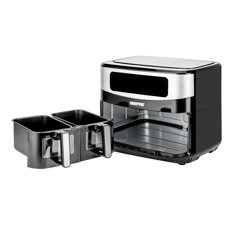 این سرخ کن جیپاس مدل GAF96711 یک سرخ کن دوقلو هست که میتوان همزمان با دو برنامه پخت مجزا با آن کار کرد. دیگر به روغن اضافی نیازی ندارد و غذا ها را با همان کیفیت و طعم شروع به پخت میکند. ظرفیت این سرخ کن جیپاس مدل GAF96711 با حجم 9 لیتری بوده و برای یک خانواده 6 نفره مناسب هست. توان مصرفی برای این محصول 2600 وات هست و دارای صحفه نمایشگر دیجیتال هست و همچنین کنترل پنل این سرخ کن دارای تاچ لمسی بوده و به راحتی میتوان برنامه پخت را تنظیم نمود. قطعات داخلی سرخ کن جیپاس GAF96711 را میتوان جدا کرد و شستشو داد، محفظه سرخ کن به راحتی قابل جدا شونده هست. دارای شستشوی آسان و جنس محفظه سرخ کن از نوع تفلون نچسپ بوده و از کیفیت خوبی برخوردار هست. سرخ کن جیپاس GAF96711 دارای قطع کن اتوماتیک هست و میتوان پس از تنظیم برنامه دلخواه آن را به حالت خود رها کرد و با خیال راحت به دیگر کارهای منزل رسید. این محصول دارای 10 برنامه پخت بوده و بنا به نیازی که داریم قابل تنظیم هست.