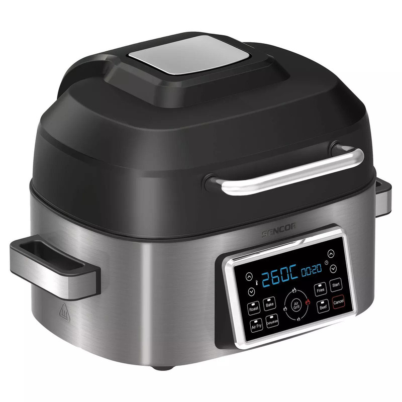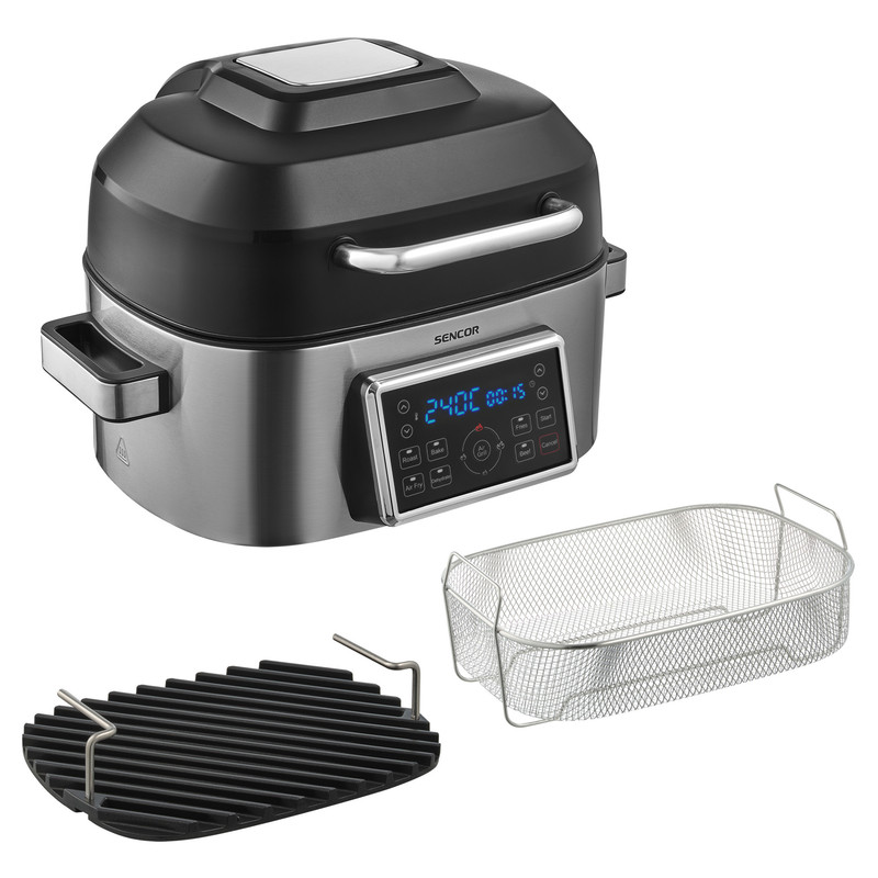 سنکور عالی SBG8900SS با هفت برنامه مختلف. 7 برنامه از پیش تعیین شده: برشته کردن / پخت / سرخ کردن در هوا / خشک کردن / سیب زمینی سرخ کرده / گوشت گاو / کبابی هوا صفحه نمایش LED با تنظیم زمان و دما تنظیمات کنترل گریل: کم / متوسط / زیاد / درجه حرارت وسیع 40 درجه سانتیگراد – 265 درجه سانتیگراد سیستم سرخ کردن بدون روغن گرمایش گردش هوا برای بهترین نتایج پخت قابلمه جداشدنی با روکش نچسب برای تمیز کردن آسان درب لمسی خنک لوازم جانبی: سبد سرخ کردنی / تابه گریل