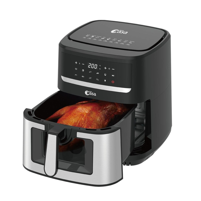 سوپر کاسا یکی از برندهای معتبر در زمینهی تولید لوازم خانگی و برقی است که چندین سال است در این حوزه فعالیت میکند. یکی از محصولات بینظیر این کمپانی، سرخ کن های بدون روغن است که در مدلهای مختلفی تولید شده است. سرخ کن های بدون روغن با تزریق هوای داغ و گردش آن در داخل محفظه، سبب آماده شدن و مغز پخت شدن غذاها میگردد. این سرخکن ها مصرف روغن را 80-90 درصد کاهش میدهند و سلامت بدن شما را برای عمری طولانی تضمین میکنند. سرخ کن بدون روغن دیجیتال دو المنته casa-8591 یکی از محصولات کمپانی سوپر کاسا است که سبب کاهش 80 درصدی مصرف روغن شده و غذاها را با میزان مصرف بسیار پایین یا بدون روغن سالم آماده میکند. سرخ کن دارای توان مصرفی ۲۱۵۰ وات است که باعث آماده شدن غذاهای دلخواه شما در زمانی کوتاه میشود. گنجایش مخزن این سرخ کن 9.2 لیتر است که به کمک آن میتوانید دوستان یا خانواده را به صرف یک وعده غذای لذیذ دعوت نمایید. پنل کنترلی این دستگاه به صورت لمسی طراحی شده است و با یک لمس غذاهای مورد علاقهی شما را آماده میکند. سرخ کن بدون روغن دیجیتال دو المنته CASA-8591 دارای سیستم تایمر و تنظیم دما است که با تغییر آن میتوانید زمان و دمای غذای خود را تنظیم کنید. هواپز بدون روغن دیجیتال سوپر کاسا دارای طراحی بدنهی منحصر به فردی بوده که از جنس پلاستیک محکم و استیل ساخته شده و از دوام و ماندگاری بالایی برخوردار است.