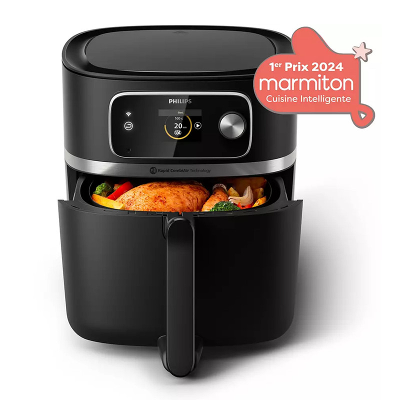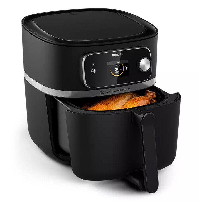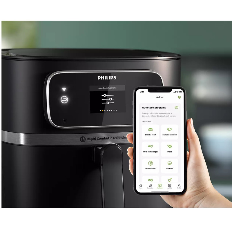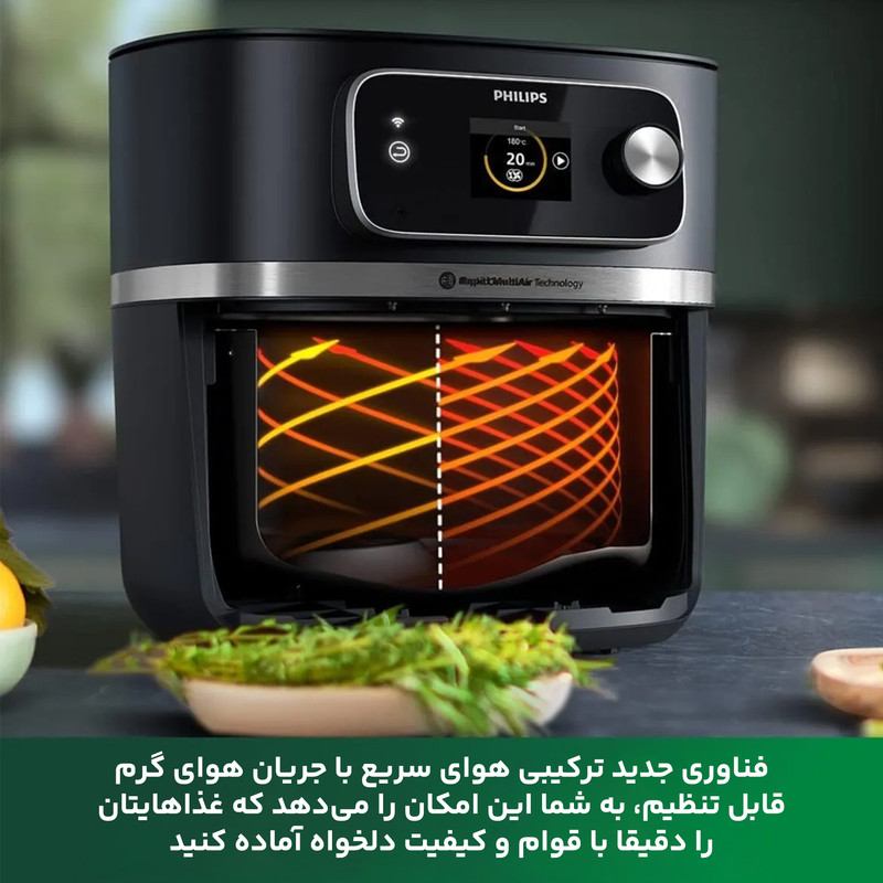 - سایر توضیحات: جدید ترین سرخ کن از سری 7000 فیلیپس، گنجایش XXL با ظرفیت 8.3 لیتر یا حجم 2 کیلوگرم مواد غذایی مناسب برای پخت غذا تا ظرفیت 7 نفر، کاملترین منوی پخت با 22 برنامه پخت متنوع، دارای ترمومتر جهت نمایش وضعیت پخت مواد غذایی مناسب گوشت، مرغ، ماهی، قابلیت اتصال و کنترل بوسیله موبایل از طریق وای فای، توان مصرفی 2200 وات،سیستم قطع خودکار، قابلیت شستشوی لوازم جانبی در ماشین ظرفشویی، برنامه های پخت متنوع شامل: سرخ کردن، برشته کردن، گریل کردن، پختن، پخت یک دست، تفت دادن، یخ زدایی ، گرم کردن مجدد، در حالت یخ زده پختن، گرم کردن، توست کردن، خشک کردن آب مواد(میوه خشک کن)، تخمیر کردن، آرام پز، مغز پخت کردن، پخت ترکیبی کیک، پخت ترکیبی گریل و …..، طراحی و مهندسی در هلند ساخت کشور چین، سبد و مخزن بزرگ با قابلیت قرار گرفتن یک مرغ کاملا درسته