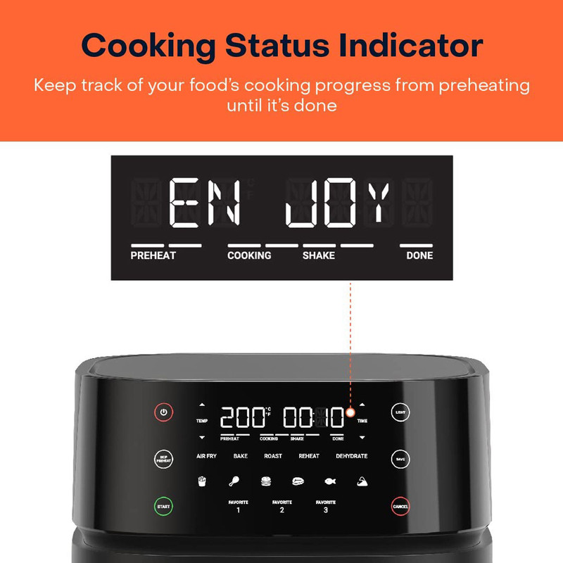| سایر توضیحات | ظرفیت 5.7 لیتر – مناسب تا 1.4 کیلوگرم سیب زمینی سرخ شده یا 1.2 کیلوگرم مرغ کامل، مناسب برای کل خانواده / میزان تولید صدا 55 دسی بل (کمترین در بین سرخ کن های بازار) / 11 برنامه پخت و پز ( دارای 5 برنامه اصلی پخت – سرخ کردن با هوا، کباب کردن، پخت، آبگیری (میوه خشک کن)، گرم کردن مجدد و 6 برنامه آماده پیش تنظیم – سیب زمینی سرخ شده، مرغ، برگر، استیک، ماهی، سمبوسه ) / دکمه های Favorite به شما امکان می دهد تنظیمات 3 دستور غذای مورد علاقه خود را برای دسترسی سریع تر ذخیره کنید / پخت و پز بی صدا – با سطح سر و صدای 55 دسی بل، از اکثر سرخ کن ها بی صداتر است، بنابراین می توانید با آرامش آشپزی کنید |