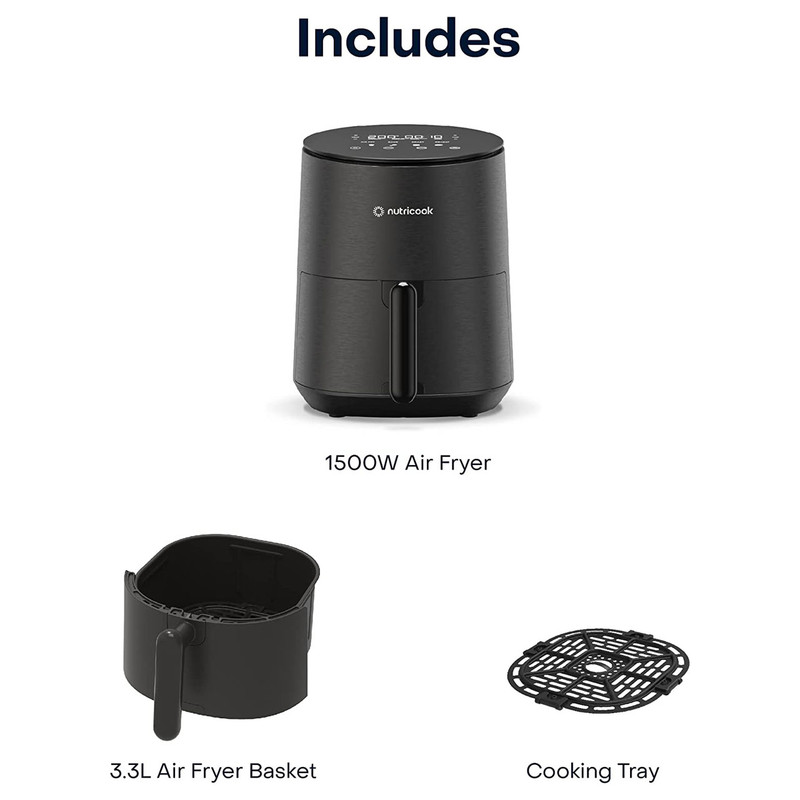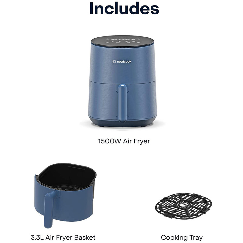 | سایر توضیحات | ظرفیت سبد 3.3 لیتر / دارای 8 برنامه پخت و پز شامل ( 4 برنامه اصلی – سرخ کردن با هوا، پخت، برشته و گرم کردن و 4 برنامه از پیش تنظیم شده – سیب زمینی سرخ کرده، مرغ، برگر و استیک ) / سبد هواپز نچسب و سینی پخت و پز فاقد PFOA/BPA هستند و قابل شستشو در ماشین ظرفشویی که به سرعت و آسانی تمیز می شوند . |