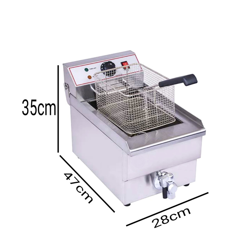 دارای المنت و ترموستاتیک می باشد. ،دارای یک سبد توری با گنجایش مخزن 10 لیتر ،ابعاد سرخ کن صنعتی : (طولxعرضxارتفاع) :28x47x35 سانتی متر ،تعداد مخزن : 1 عدد ،گنجایش :10 لیتر ساخت : PRC ،جنس مواد اولیه :stainless-steel ،قدرت ورودی : 3KW ،ولتاژ : 220V ،وزن : 7.5 کیلوگرم