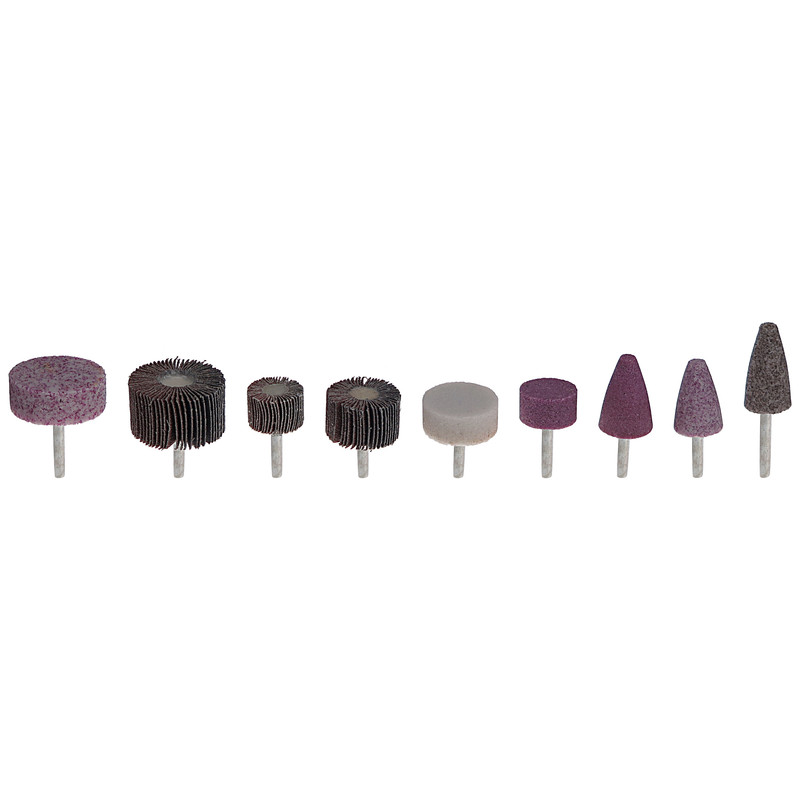 این مجموعه شامل سنگ های r دار و سنگهای استوانه و سنباده های پر مصرف و کاربردی میباشد.سنگهای استوانه دارای قطر 30و40و50 درارتفاع 18میلیمتر میباشد وسنگهای مخروطی r دار با قطر 22و ارتفاع 45میلیمتر و قطر 28و ارتفاع40میلیمتر وقطر 25میلیمترو ارتفاع40میلیمترمیباشد و سنباده چتری در سایزهای 30و40و50 میباشد که همگی دارای قطر میله 6میلیمتر میباشد و در تمامی دستگاههای فرز انگشتی و دلر که قطر 6میلیمتر را ساپورت میکند قابل استفاده میباشد.برای استفاده در سطوح مختلف انواع کاربرد را دارد.این محصول از فرمولاسیون مجزا تهیه شده و بسیار سختتر و خشنتر میباشدکه قابلیت براده برداری و سایش روی قطعات با جنسهای گوناگون از قبیل :چوب .آهن.الومینیوم.استیل.فولاد و چدن را دارد. این محصول با توجه به تجربه چند ساله در زمینه تولید سنگ انگشتی و انواع سنباده تولید شده است و با توجه به نیاز شما در فرمها و شکلهای گوناگون میباشد که بسته به کار مورد نظر میتوانید از انها بهره بگیرید ودر مصارف عمومی و صنعتی و تخصصی از آن استفاده کنید.برای ایمنی بیشتر در حین کار از عینک مخصوص استفاده کنید. تمام محصولات با افتخار در ایران و به وسیله نیروی کاملا ایرانی و با امکانات محدود تولید میشودکه قابل رقابت با محصولات مشابه خارجی میباشد.