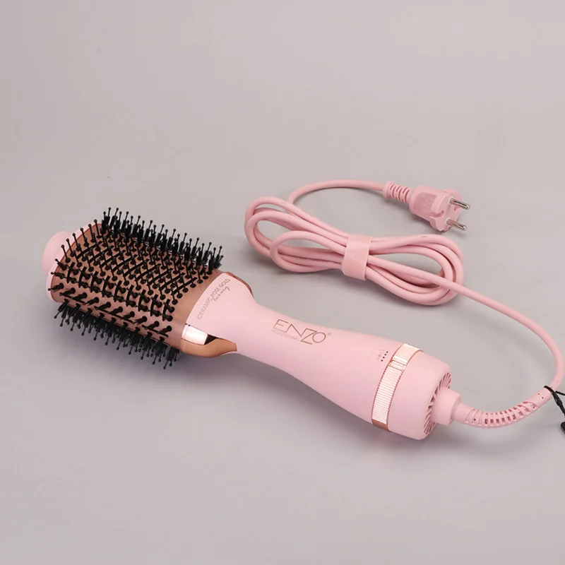 خشک کردن و صاف کردن موها بعد از استحمام یکی از ضروریات برای تمامی افراد اللخصوص بانوان می باشد که به دلیل حجم زیاد موها خشک کردن وصاف کردن موهایشان ممکن است زمان زیادی طول بکشد و یا دچار خستگی نیز بشوند. اما میتوانند با استفاده از دستگاههای حالت دهنده و خشک کنند مو این کار را در کمترین زمان ممکن و به راحتی انجام دهند و از اسیب رساند به موها بر اثر استفاده از شونه های معمولی که موها را از ریشه میکند . جلوگیری کند. این دستگاه یکی از مدلهای پرطرفدار برند Enzo در بین ابزارهای حالت دهنده مو است این دستگاه ترکیبی از سشوار و برس حرارتی است و به شما کمک میکند تا در یک مرحله هم موها را خشک کنید و هم حالت بدهید. این دستگاه برخلاف سشوارهای معمولی در این مدل نیازی به استفاده از برس جدا نیست خودش همزمان باد گرم را پخش میکند و موها را با برس چرخان مرتب میکند و موها را نیز حجیم میسازد و بسیار کاربردی است. این دستگاه با طراحی هوشمندانه و عملکرد دوگانه بهت اجازه می دهد بدون نیاز به ابزارهای اضافی موهات رو مثل آرایشگاه حالت بدی و هم موها را خشک کنی و استایل مد نظر خود را به موهایتان بدهید. این دستگاه دارای متور قدرتمند سوپر سایلنتی میباشد با توان ۱۵۰۰ وات که بسیار سریع و موثر عمل میکند همچنین متور این دستگاه کاملا کم مصرف میباشد و در مصرف برق نیز کم تر از سایر محصولات مشابه مصرف دارد. این دستگاه با جنس دندونه های نانو سرامیکی است و از اسیب رساند به موها و یا وز شدن موها جلوگیری میکند همچنین سه حالت تنظیم پرتاب باد باد ملایم باد گرم و باد سرد که کنترل کاملی بر دما و حجم باد داشته باشید . با استفاده از این دستگاه هم موهات رو خشک میکنی هم صاف یا حالت دارش میسازی باد گرمش برای براشینگ حرفه ای عالیه باد ملایمش برای خشک کردن طبیعی موها و باد سردش برای تثبیت حالت و درخشندگی بیشتر مو کاربردی است. همچنین این دستگاه برای افرادی که میخواهند سریع تمیز و بدون اسیب رساند به موها موهای مرتب و خوش فرم داشته باشند بسیار کاربردی است و میتوانید در کمترین زمان موهای خود را کاملا باهعاش خشک خشک کنید.