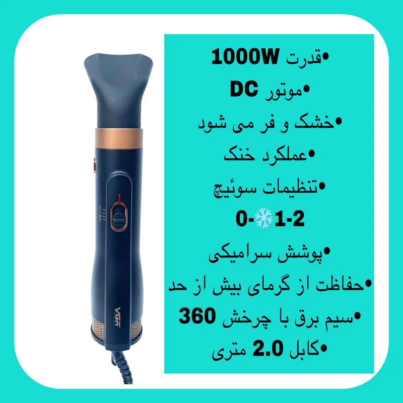 سشوار برس دار حالت دهنده وی جی ار مدل V-491