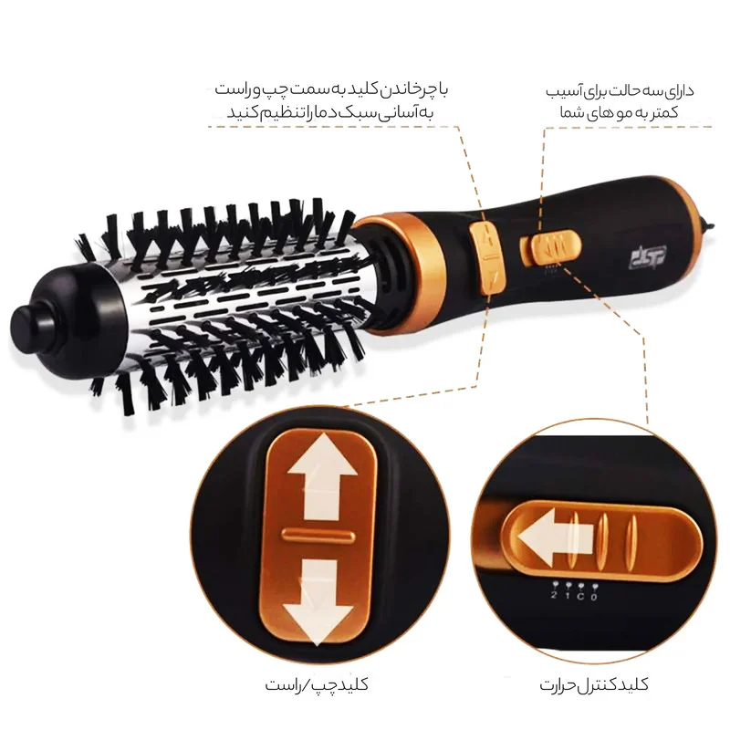 سشوار چرخشی دی اس پی دارای چندین کاربرد متفاوت بوده که به آن امکان می دهد تا هم برای خشک کردن ، فرکردن و یا صاف کردن مو بتوان از آن استفاده کرد و نیاز شما را به چندین محصول مختلف را از بین می برد. قابلیت باد سرد این محصول بیشتر برای مدل دادن به مو ها مورد استفاده قرار میگیرد.