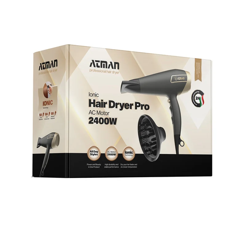 سشوار آتمن مدل BY-5962 یک سشوار سالنی فوقالعاده پرقدرت است که برای استفاده حرفهای و مداوم در سالنهای زیبایی طراحی شده. این دستگاه با ژنراتور تولید یون منفی و توان تولید تا ۶۰۰ میلیون یون منفی، بهطور مؤثر شکنندگی مو را کاهش میدهد، از آسیب حرارتی جلوگیری میکند و رطوبت طبیعی مو را حفظ میکند؛ نتیجه، موهایی سالمتر، نرمتر و براقتر حتی در براشینگهای مکرر روزانه است.