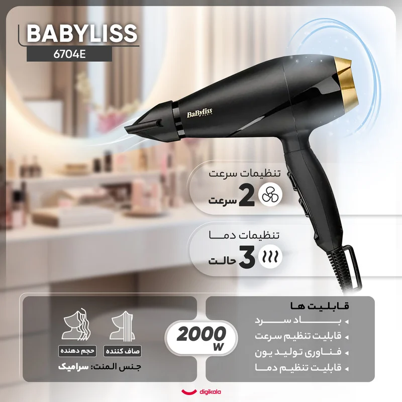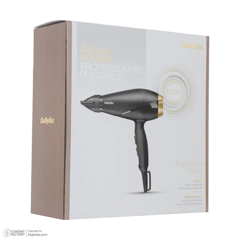 سشوار بابیلیس موتور 2000 وات از نوع AC دارد که بادی با سرعت 100 کیلومتر در ساعت تولید میکند. این سرعت باد به خشککردن و حالتدادن سریعتر موها کمک میکند. سرعت باد سشوار در دو حالت کم و زیاد قابلتنظیم است. حرارت سشوار را میتوان در سه حالت باد سرد، باد گرم و باد داغ تنظیم کرد. از باد سرد میتوان برای تثبیت حالت موها استفاده کرد. رویهمرفته 5 حالت مختلف سرعت و حرارت وجود دارد که با توجه به جنس مو و کاربری موردنظر، میتوان یکی از آنها را انتخاب کرد. طبق انتظار، همراه سشوار یک متمرکزکنندهی باد هم ارائه شده است. این متمرکزکننده دارای طول 75 میلیمتر و عرض باریک 6 میلیمتر است که باد را با شدت بیشتری در یک نقطه از مو متمرکز میکند. در قسمت ورودی هوای سشوار، فیلتر هوای آن قرار دارد که به شکل چرخشی باز میشود و میتوان آن را تمیز کرد. در قسمت اتصال سیم برق به دستهی سشوار، حلقهای پلاستیکی قرار دارد که برای آویزانکردن سشوار استفاده میشود. به طور خلاصه این سشوار دارای موتور 2000 وات AC، دو حالت سرعت و سه حالت دما، حداکثر سرعت باد 100 کیلومتر در ساعت، متمرکزکنندهی باریک و حلقهی آویختن بوده و برای مصارف حرفهای مناسب است.