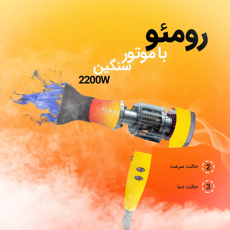 سشوار رومئو RM-5151 با توان 2200 وات، تلفیقی از تکنولوژی‌های نوین و طراحی هوشمندانه است که تجربه‌ای حرفه‌ای در آرایش مو را به ارمغان می‌آورد. این دستگاه با بهره‌گیری از فناوری یونی، به شما این اطمینان را می‌دهد که هنگام خشک کردن موها، رطوبت طبیعی آن‌ها حفظ شده و از آسیب‌های حرارتی جلوگیری می‌شود. طراحی منحصر به فرد این سشوار باعث می‌شود که حرارت به طور یکنواخت در سراسر مو توزیع شود و از ایجاد نقاط داغ جلوگیری شود. استفاده از فناوری Runzi curing به همراه دکمه باد سرد، امکان تثبیت سریع و حرفه‌ای مدل مو را فراهم می‌کند؛ به گونه‌ای که نتیجه نهایی همواره شیک و مرتب به نظر برسد. با دو تنظیم سرعت و سه تنظیم دما، این دستگاه انعطاف‌پذیری بالایی در انطباق با نیازهای متفاوت موهای شما دارد و به شما کنترل دقیقی بر فرآیند خشک کردن می‌دهد. علاوه بر این، سیستم حفاظت در برابر گرمای بیش از حد تضمین می‌کند که حتی در شرایط استفاده مکرر، از ایمنی کامل برخوردار باشید. طراحی ارگونومیک با حلقه آویزان و امکان جدا شدن کنسانتره هوای هوا، استفاده از RM-5151 را در هر محیطی از جمله سالن‌های آرایشگری و استفاده خانگی به تجربه‌ای آسان و مطمئن تبدیل می‌کند. با انتخاب این سشوار، شما در حال سرمایه‌گذاری روی زیبایی، سلامت مو و بهره‌مندی از تکنولوژی‌های پیشرفته‌ای هستید که مرزهای آرایش حرفه‌ای را به واقعیت نزدیک می‌کند.
