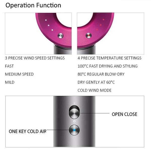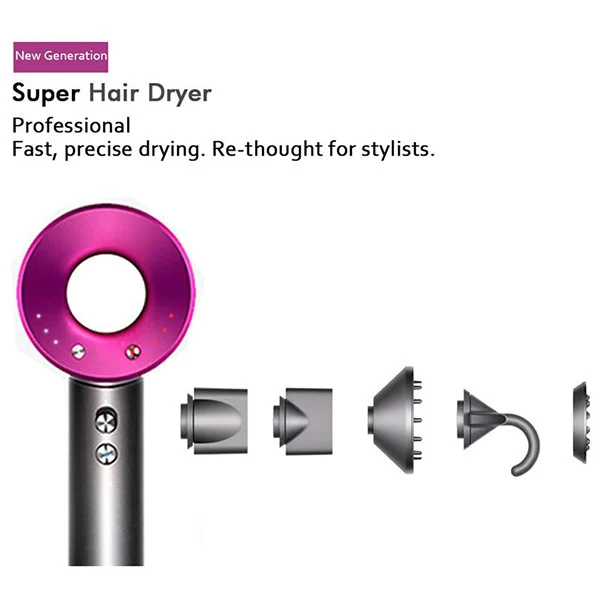 سشوار حرفه ای مدل LH Drier با موتور قدرتمند دیجیتال و کنترل هوشمند حرارت ، دارای اتصالات جدیدی برای حالت دادن، حجم دادن یا خشک کردن سریع انواع مو بدون گرمای شدید است. بر خلاف سشوارهای معمولی، این سشوار دارای حداکثر دمای 105 درجه سانتیگراد در شرایط کارکرد معمولی است که از آسیب حرارتی جلوگیری نموده و درخشندگی طبیعی موهای شما را حفظ می کند. همچنین سشوار دارای ترمیستور داخلی است که دما را کنترل می کند و در صورت رسیدن به دمای 145 درجه سانتی گراد دستگاه را خاموش و ایمنی و دوام آن را تضمین می کند. بسته به نوع مو و نتیجه دلخواه می توانید از بین سه تنظیم سرعت باد یکی را انتخاب کنید: سریع، متوسط و ملایم. همچنین میتوانید دما را با کنترل دمای LED تنظیم کنید که چهار تنظیم دقیق را ارائه میکند( با فشار دادن دکمه ای که علامت دایره قرمز دارد ): 100 درجه سانتیگراد برای خشککردن سریع و حالت دادن، 80 درجه سانتیگراد برای خشککردن معمولی، 60 درجه سانتیگراد برای خشککردن با حرارت ملایم، و حالت هوای سرد که میتوان آن را با فشار دادن و نگهداشتن دکمه فعال کرد که هوای خنک آزاد شده باعث تثبیت حالت موهایتان می شود. این سشوار به گونه ای طراحی شده است که استفاده و نگهداری آن آسان باشد. ورودی هوا دارای یک صافی داخلی است که از استنشاق گرد و غبار و مو که می تواند به موتور آسیب برساند و جریان هوا را کاهش دهد، جلوگیری می کند. پوشش فیلتر ورودی هوا نیز قابل جدا شدن و تمیزکردن است . سشوار از فناوری کاهش صدای آکوستیک برخوردار است که سطح نویز را تا 50 درصد کاهش می دهد . سشوار همچنین دارای طراحی شیک و ارگونومیک است که به راحتی در دست شما قرار می گیرد. این سشوار با وجود اینکه قدرت بسیار زیادی دارد اما وزن آن بسیار کم ( 470 گرم )میباشد و هنگام کار با آن هیچگونه احساس خستگی و یا فشاری به مچ دست شما وارد نمی شود .موتور این سشوار در قسمت دسته آن تعبیه گردیده که چرخش خود را به پره های آن در قسمت فوقانی سشوار انتقال میدهد. این سشوار دارای 5 سَری متفاوت است که هریک دارای کارایی منحصر به فرد است که میتوانید در تصاویر محصول اطلاعات بیشتری در مورد عملکر سَری ها را مشاهده بفرمایید .