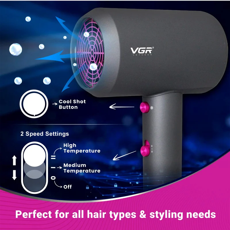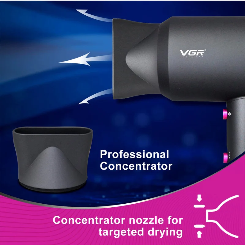 سشوار وی جی آر مدلv-400 محصولی کاملاً حرفهای بوده که مناسب برایاستفاده خانگی و سالنهای آرایشگری میباشد. این سشوار دارای بدنه پلاستیکی مات است که علاوه بر زیبایی، باعث استحکام بالای آن و همچنین دوام دستگاه میشود و با استفاده از موتور AC که برای آن تعبیه شده موهای شما را در سریعترین زمان ممکن خشک کرده و یا اگر بخواهید به مو حالت بدهید بهترین نتیجه را برای شما به ارمغان می آورد و از هرگونه وزی برای موهای تان جلوگیری خواهد کرد. طراحی دستگاه به گونه ای است که سشوار دارای دکمه خنک کننده و باد سرد نیز است. به همراه این سشوار فوق العاده یک عدد سری مخصوص نیز ارائه شده است.