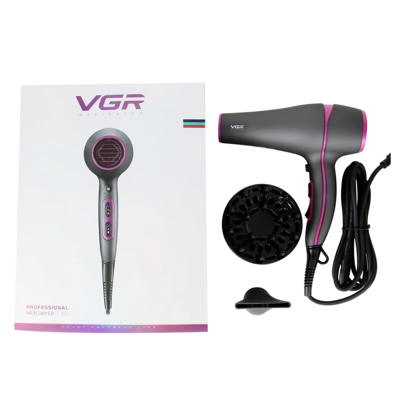 سشوار وی جی آر مدل 402 دو سرعته و دارای2 درجه گرما و تکنولوژی جدید کلید مستقل سرما میباشد قدرت این سشوار 2200 وات و موتور این سشوار AC است طول کابل سشوار 3 متر و قابل استفاده در آرایشگاه و منزل میباشد .