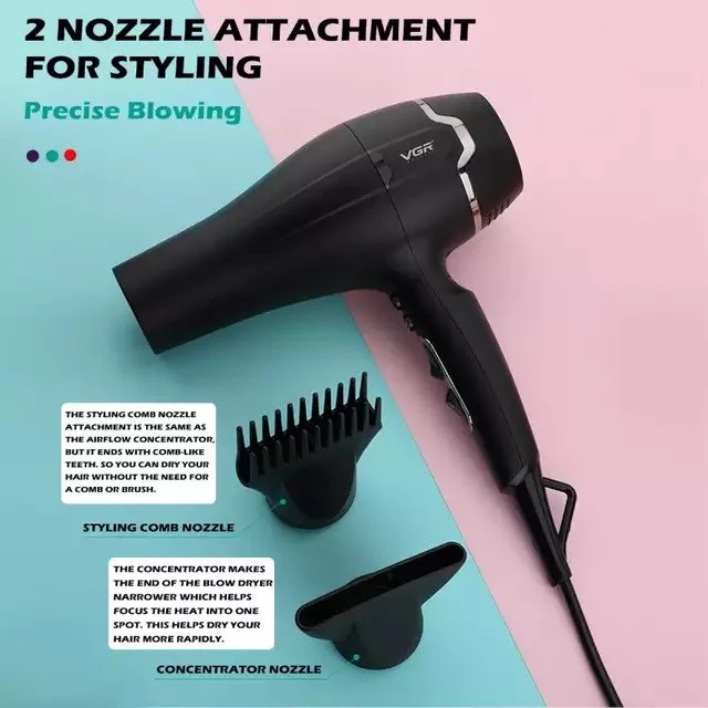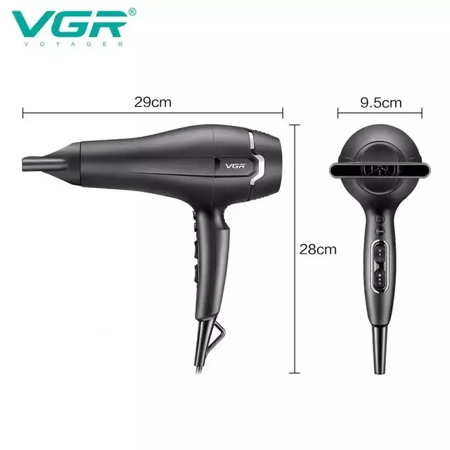 سشوار وی جی آر مدل 450 دو سرعته و دارای 3 درجه گرما و تکنولوژی جدید کلید مستقل سرما میباشد قدرت این سشوار 2400 وات و موتور این سشوار AC است طول کابل سشوار 2.5 متر و قابل استفاده در آرایشگاه و منزل و هتل ها میباشد .
