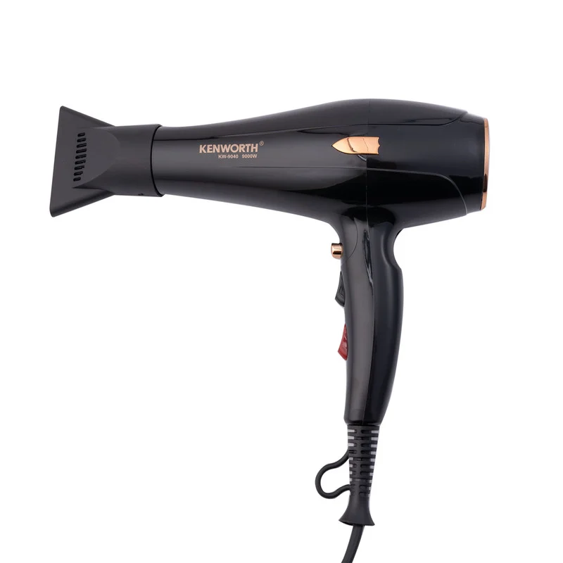 سشوار 9020 کنورث (Kenworth) دارای موتوری قدرتمند با عمرطولانی و توان 9000 وات بوده و در کنار قدرت فوق العاده ای که دارد با طراحی کم صدا، صدای زیادی تولید نمی کند و به وسیله آن می توانید موهای خود را خیلی سریع خشک و یا حالت دهی کنید. شما می توانید حرارت باد سشوار را در دو حالت دمایی تنظیم کنید و با فعال کردن حالت دمایی باد سرد حالت دهی موهای خود را تثبیت کنید. قابلیت تولید یون های منفی نیز در اتو مو، سشوار، برس حرارتی و … یکی از کاربردی ترین فناوری ها است و می تواند به سلامت موها کمک زیادی بکند. قابلیت یونیزاسیون باعث می شود آسیب و صدمه کمتری به مو وارد شود و بعد از حرارت دیدن، مو دیگر حالت وز شدگی نخواهند داشت. این سشوار همچنین دارای عملکردی است که حرارت را در نقطه متمرکز نکرده و از موهای شما در برابر آسیب حرارت بالا محافظت میکند. همچنین جنس بدنه این سشوار از پلاستیک ABS است که از ویژگی های آن می توان به مقاومت بسیار زیاد در برابر مواد شیمیایی و تعادل قابل قبول در مواجهه با گرما و ضربه اشاره کرد.
