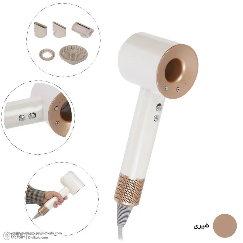 - اقلام همراه سشوار: استند نگهدارنده، دیسپانسر، سری دندانه دار، متمرکز کننده باریک، متمرکز کننده پهن