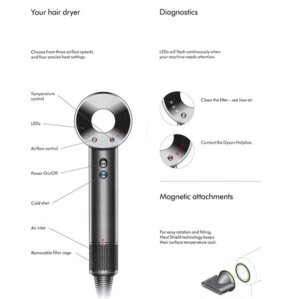| اقلام همراه سشوار | استند نگهدارنده، دیسپانسر، سری دندانه دار، متمرکز کننده باریک، متمرکز کننده پهن |