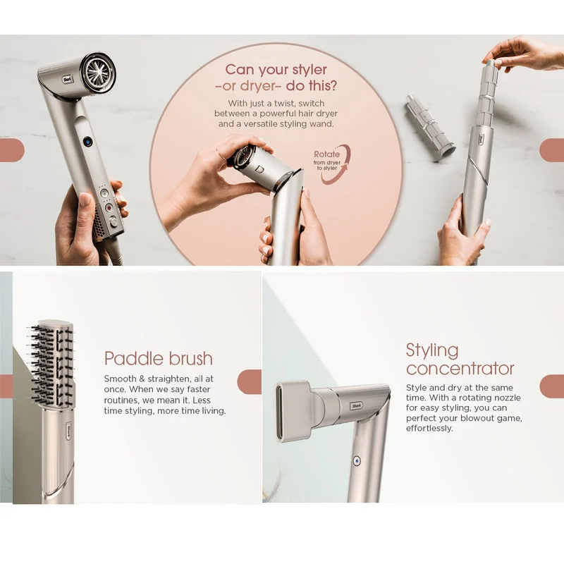 مناسب برای انواع مو : از موهای صاف و موجدار گرفته تا موهای فر و مجعد، این دستگاه برای تمامی انواع مو طراحی شده است. هر سری بهگونهای طراحی شده که بدون کشیدن یا آسیب، بهترین حالتدهی را ارائه دهد.طراحی کاربرپسند : سبک، قابل حمل و با دکمههای کنترلی آسان برای تنظیم حرارت و سرعت. طراحی قابلتبدیل از سشوار به استایلر، حمل آسان و مناسب سفر و سالنهای آرایشی.نتایج حرفهای در خانه : با Shark FlexStyle میتوانید به راحتی مدلهای موی سالنی را در خانه خود ایجاد کنید. این دستگاه عملکرد حرفهای در خانه را برای شما به ارمغان میآورد.