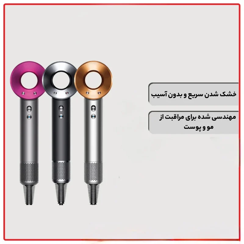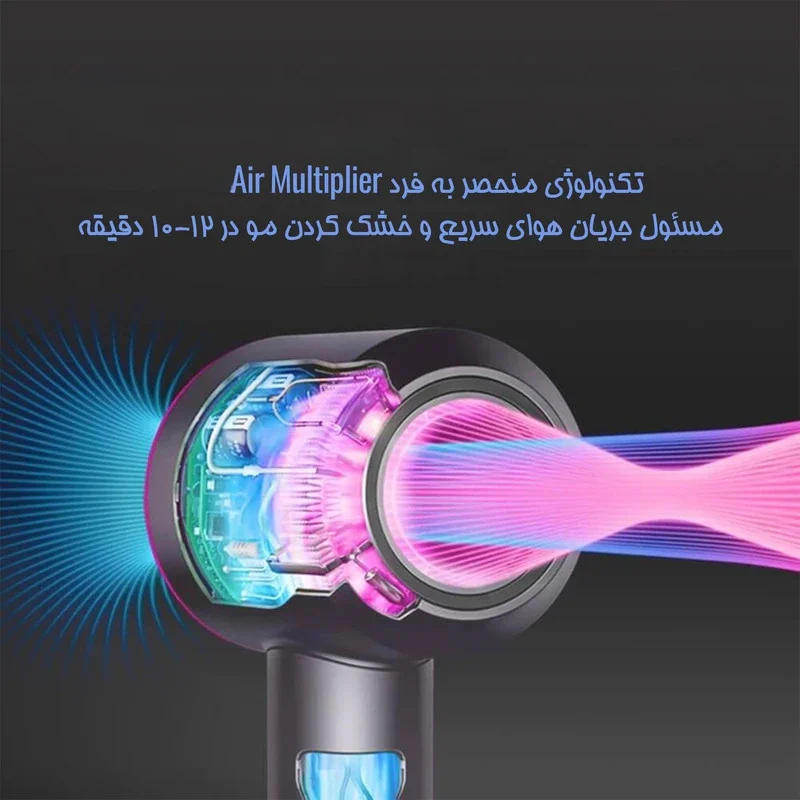 این سشوار، با ظاهری شیک و کارایی بالا، یک انتخاب عالی برای استفاده در سالن زیبایی و استفاده در خانه است. آن را امتحان کنید و تجربه‌ی یک حالت خشک کنی متمایز و سریع را برای خودتان تجربه کنید! سشوار leafless برای خشک کردن مو از فن داخلی به جای پره‌های معمولی استفاده می‌کنند. این فن داخلی، جریان هوای قوی و مستقیمی را ایجاد می‌کند که به موها اجازه می‌دهد به سرعت خشک شوند. این روش خشک کردن مو باعث کاهش زمان مورد نیاز برای خشک کردن مو می‌شود و همچنین موها را از حرارت اضافی محافظت می‌کند. این عملکرد متمایز سشوار leafless را به یک انتخاب بسیار مورد توجه برای افرادی که به دنبال یک روش موثر و موثر برای خشک کردن موهای خود هستند، تبدیل کرده است. این سشوار دارای یک موتور v9 و فن 13 پره است که به یک دسته متصل هست. با ظاهری کاملا ساده طراحی شده و طوری طراحی شده است که هنگامی که در دست قرار می گیرد وزن خاصی را احساس نمی کنید. چرخش 110 هار دور در دقیقه در این سشوار ممکن شده است و همین باعث ایجاد فرکانس هایی شده است که تقریبا غیر قابل شنیده شدن دارند. به علاوه در این سشوار از فناوری استفاده کرده است که در قسمت داخلی عناصر گرمایشی قرار داده است و ایمنی را بالا تر برده است. و گفته می شود در این سشوار کمتری آسیب را به موهای سر وارد می کند. قدرت فوق العاده سشوار از موتور گرفته می شود که در دسته سشوار تعبیه شده است. این موتور کوچک فشار هوای متمرکزی که برای خشک نمودن و حالت دادن به موی سر مناسب باشد را تولید می کند.