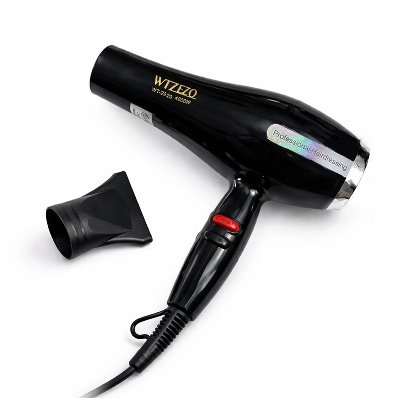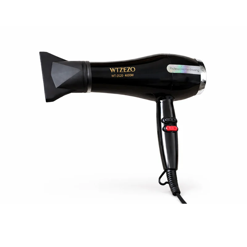 سشوار WTZEZO مدل WT-2020 ساخت چین (P.R.C) با توان اسمی ۴۰۰۰ وات و موتور DC طراحی شده و مناسب استفاده خانگی و حرفهای در سالنهای زیبایی است. این دستگاه با ولتاژ ۲۲۰ تا ۲۴۰ ولت و دوشاخه استاندارد کار میکند و دارای دو حالت تنظیم سرعت و سه حالت تنظیم دما است که پایینترین حالت دما عملکرد هوای خنک را فراهم میکند و همچنین از سیستم باد سرد مستقل (Independent Cool Shot) بهره میبرد. طراحی هوشمند جریان هوا (Smart Air Design) و قابلیت افزایش قدرت باد (Turbo) باعث خشککردن سریع موها با کنترل بهتر حرارت میشود. این سشوار به یک نازل متمرکزکننده برای حالتدهی دقیقتر مجهز است. وزن حدود ۶۵۰ گرم و طول سیم ۱.5 متر، استفاده از آن را راحت و کاربردی کرده و این مدل را به گزینهای مناسب برای خشککردن و حالتدهی انواع مو تبدیل میکند.
