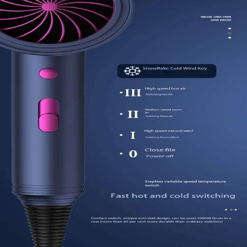 موتور پر قدرت و در عین حال کم صدای این سشوار باعث سریع تر خشک شدن موها میشود و دارای 2 درجه باد گرم و 1 درجه باد سرد است که میتوانید بسته به نیاز خود از هر کدام از آنها استفاده کنید.
