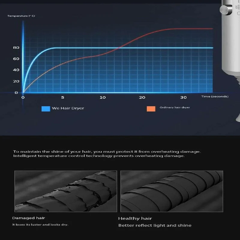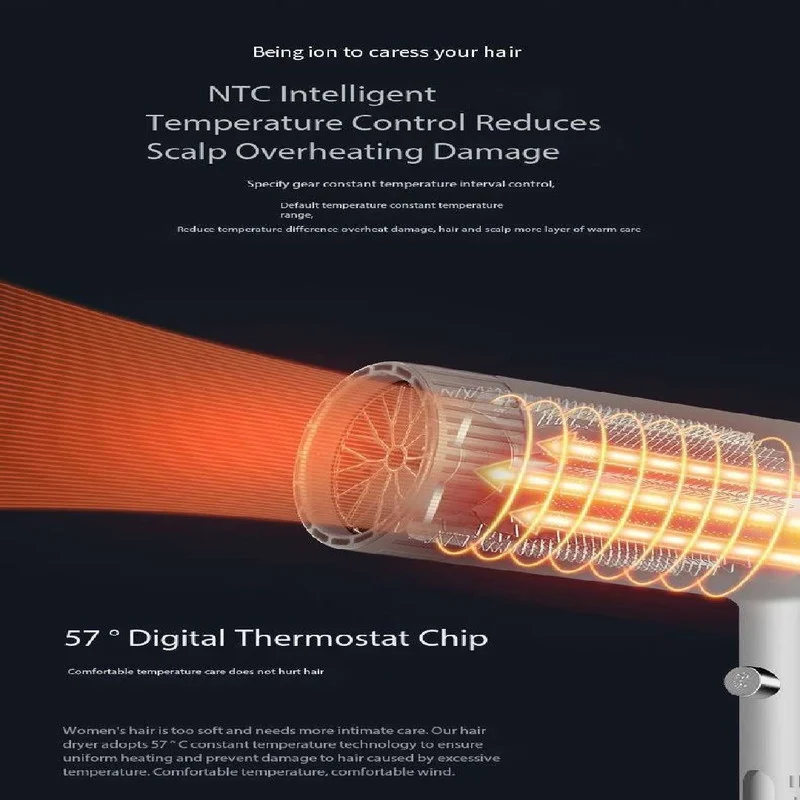 در این سشوار از تراشه های ترموستاتیک 57 درجه استفاده شده است ، این تراشه های از داغ شدن بیش از حد سشوار جلو گیری میکند تا از آسیب رسیدن به موها به خصوص موهای بانوان که لطیف تر هست جلوگیری کند .