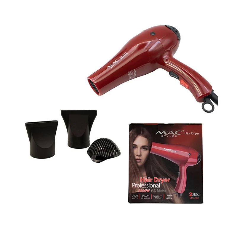 سشوار از جمله ابزار سلامت مو می باشد که برای خشک کردن و خوش حالت کردن مو از آن استفاده می شود. برای داشتن مو هایی خوش حالت و خوش فرم نیاز به یک سشوار مناسب می باشد. شرکت مک استایلر با تولید انواع مختلف سشوار با کیفیت های عالی توانسته نظر بسیاری را جلب کند. سشوار مک استایلر مدل MC-803 از نوع سشوارهای حرفه ای به شمار می آید. این سشوار دارای موتور AC ایتالیایی با توان 2000 وات مناسب جهت کراتینه تراپی می باشد. سشوار MC-803 دارای 3 حالت کنترل فشار باد خاموش، متوسط، زیاد و 3 حالت کنترل حرارت سرد، ملایم و گرم میباشد که متناسب با نیاز خود میتوانید حالت های مختلف را توسط کلید های روی بدنه ترکیب نمایید. این سشوار با 50% صرفه جویی در زمان و جلوگیری از آسیب رساندن به مو به دلیل حرارت بسیار بالا و پرتاب باد سریع، گزینه بسیار مناسبی جهت استفاده روزانه شما می باشد.