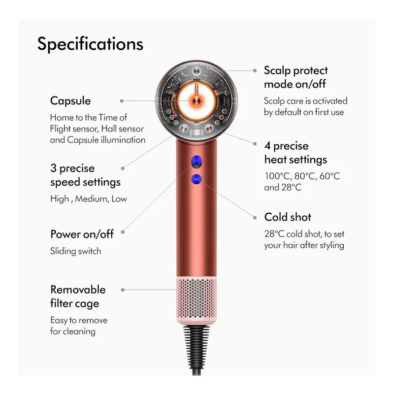 سشوار دایسون مدل Supersonic nural یکی از محصولات این برند بوده که با با فناوری سریع و هوشمند بدون گرمای شدید، یک جت هوای کنترل شده با فشار بالا و سرعت بالا برای خشک کردن سریع مو ایجاد میکند. این سشوار دارای پنج سری مختلف جهت کاربردهای متفاوت است که برای حالت دادن و خشک کردن مو استفاده میشود. این سشوار برای انواع مو از جمله موهای فر و حالتدار و همچنین صاف و لخت قابل استفاده است و هیچ گونه آسیبی به موهای شما نمیزند.