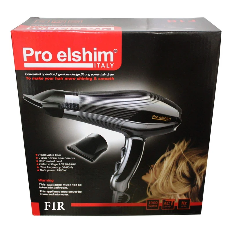 در انتخاب یک سشوار اولین نکتهای به آن توجه میشود، موتور سشوار است. بدون شک کسانی که استفادهی حرفهای از سشوار میکنند، باید از سشوارهایی با موتور AC استفاده کنند که مقاومت بیشتری دربرابر روشنبودن طولانی دارند. قدرت موتور سشوار نیز مهم است و هرچه این قدرت بیشتر باشد، پرتاب باد سشوار هم بیشتر میشود و با سرعت و قدرت بیشتری میتوان کار خشککردن و حالتدادن به موها را انجام داد. سشوار پرو الشیم مدل F1R سشواری حرفهای دارای موتور پرقدرت 1900 وات AC و دو متمرکز کنندهی هواست. برای حفظ قدرت باد سشوار باید چند وقت یکبار فیلتر هوای آن را تمیز کرد. فیلتر هوا بهآسانی به شکل چرخشی از انتهای سشوار باز میشود و میتوان آن را شست. سیم مدلهای حرفهای را عموما بلند میگیرند تا هنگام استفاده مشکلی بابت کوتاهبودن سیم وجود نداشته باشد. دارای سیم به طول 3 متر و در محل اتصال به بدنه دارای حلقهای است که به کمک آن میتوان دستگاه را آویزان کرد.