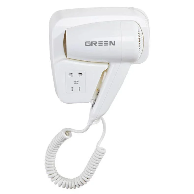 سشوار هتلی با قدرت 1200 وات و سوکت دار با قابلیت نصب به دیوار مناسب و تنظیم دما جهت خشک کردن مو و بدن میباشد.سشوار در منزل و یا مهمانپذیر ها و هتل ها غالبا در قسمتی از سرویس بهداشتی نصب شده است و برای خشک کردن مو و بدن مورد استفاده قرار میگیرد.سشوار هتلی گرین 2000 با قدرت 1200 وات (قابل تنظیم) و سوکت روی بدنه (110 و 220 ولت) مناسب جهت هتل ها و مهمانپذیر ها ، استخر ، سونا و ... است.در صورتی که سشوار را در ارتفاع مناسبی قرار گیرد ، در هنگام که اگر از دست کاربر رها شود به زمین برخورد نخواهد کرد و از آسیب دیدن آن جلوگیری میشود.این سشوار دارای یک دکمه دو حالته (کم / زیاد) در پشت برابر میزان باد و گرما و یک دکمه فشاری در جلوی سشوار می باشد که با فشار دادن روشن و با رها کردن آن دستگاه خاموش میشود.تمام قطعات بدنه این مدل از پلاستیک می باشد و در صورت خیس بودن دست یا بدن مانع از برق گرفتگی خواهد شد.این سشوار از طریق یک سیم با حالت فنری مقاوم متصل میشود و در صورت افتادن از دست کاربر ، کلگی سشوار به زمین برخورد نمیکند . و در ضمن به دلیل فشاری بودن دکمه روشن/خاموش ، دستگاه خاموش میشود.بر روی پایه سشوار دو عدد جا برای اتصال برق وجود دارد که عمدتا برای ریش تراش کاربرد دارد و دارای تبدیل برق 220 به 110 ولت می باشد که برای مهمانان خارجی که از برق 110 استفاده میکنند مفید میباشد.