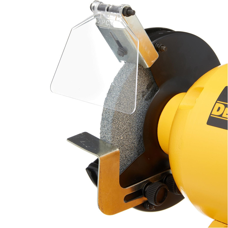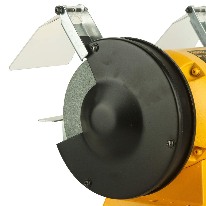 دیوالت در این مدل از سنگ فرز رومیزی از دو صفحهی مختلف استفاده کرده تا براساس دانه درشتی یا متوسط بودن سطح کار از آن استفاده کنید.از آنجایی که در طراحی این سنگ رومیزی دقت زیادی انجام شده، ساختار دقیقی دارد که به خوبی روی قطعه کار قفل شده و شخص کنترل کاملی روی آن دارد.سنگ رومیزی دیوالت مدل Dw752R محافظ چشمی هم دارد که از چشمان شما در مقابل پرتاب تکههای خرد شدهی کار محافظت میکند.