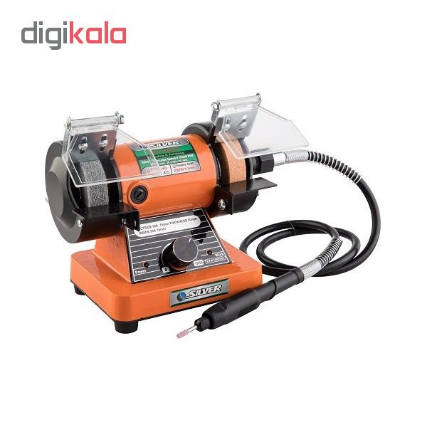 یکی از محصولات شرکت «سیلور» (Silver) که تحت عنوان مدل « GTP02A10» به بازار عرضه شده را ملاحظه میفرمایید. این سنگ وزنی برابر3کیلوگرم بوده و توان آن 200 وات است. سرعت گردش آزاد این سنگ رومیزی از 0 تا 10000 دور بر دقیقه بوده و باکمک آن میتوان بهشکل همزمان از دو سمت دستگاه استفاده کرد. قطر صفحهی این محصول 75 میلیمتر بوده و ضخامت آن 20 میلیمتر است. از این دستگاه برای کار با فلزات استفاده میشود. این محصول وزن مناسبی دارد و بهشکلی بسیار کمصدا طراحی شده است. این دستگاه دارای پایههای لاستیکی بوده که کاربر میتواند در صورت نیاز آن را روی میز متصل نماید. اطراف سنگ این محصول نیز باکمک حفاظهایی فلزی پوشیده شده است. این سنگ رومیزی ابعادی برابر 14 × 12 × 18 سانتیمتر داشته و برای تیز کردن قطعات فلزی نیز مورد استفاده قرار میگیرد بعلاوه دارای 1 عدد فرز انگشتی خرطومی میباشد و دستگاه دارای دیمر تنظیم سرعت میباشد.